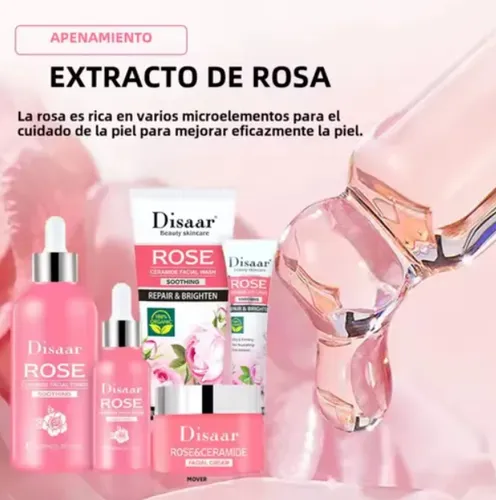 Descubre el poder de la rosa y las ceramidas con este elegante kit de cuidado facial 5 en 1. Diseñado para hidratar, calmar, reparar y proteger, este set transforma tu piel desde el primer uso, dejándola radiante, firme y equilibrada.